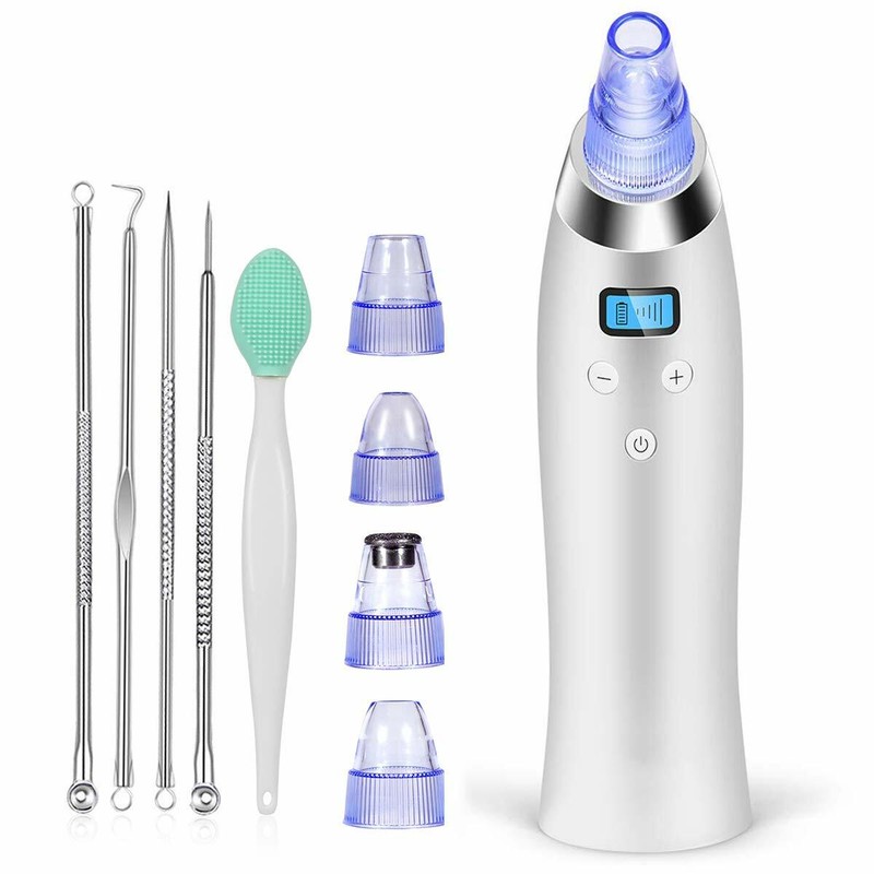 New listingelectric blackhead remover vacuum suction face nose pore cleaner with 5 probes. You can save on the expenses. Blackhead remover vacuum with led display. Since the device owns five different intensity levels and four distinct removable probes, you will have no difficulty finding a setting that permits you. It gives you an unprecedented cleaning experience and lets you have a clean face, keeping you away from thick pores, rough skin, & dark skin, exfoliating dead skin, pimple & pores of. As an updated version, this rechargeable 5 probes blackhead remover provides stronger and more stable suction to effectively remove blackheads, dead skin cells, dirt, unclog pores, lift and tighten skin, reduce fine package include: 2 x silicon circular head. * suction bigger than traditional comedo suction probe. Vacuum blackhead remover device accessible in multiple models to accommodate all your requirements. This will remove surface oil, along with the dirt and makeup that might be resting on your top layer of your skin (epidermis). To be your professional home spa skin care tools. How to use this blackhead vacuum remover? Blackhead remover vacuum is caming with 4 probe heads for different skin conditions: